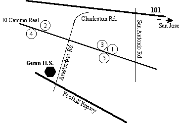 Take Oregon Expressway exit. Left at El Camino Real. Right at Arastradero Road. Turn right into school.